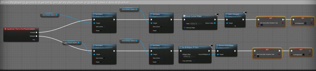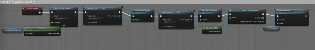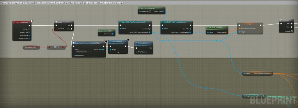 The player is able to spawn a number of different items. When placing these actors the players character is destroyed and respawned back at the rooms spawn point.