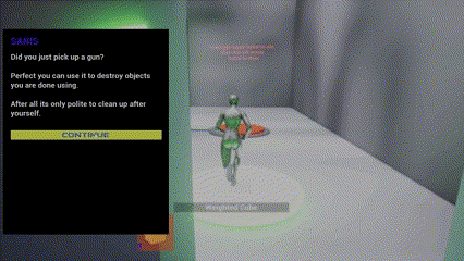 place able objects are unlocked as the player progresses through the game these items are a weighted cube (used to press buttons), Bounce Pad (used to launch player higher into the air), zero gravity platform (a platform that remains stationary in the air), and a placeable spawn point (acts as the players respawn point unless it is destroyed or the player reactivates the rooms permeant spawn point). See video for a demonstration of all of these.