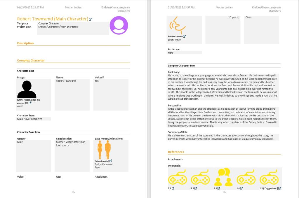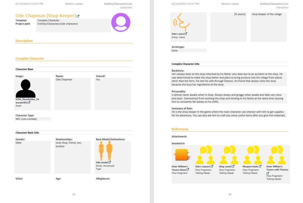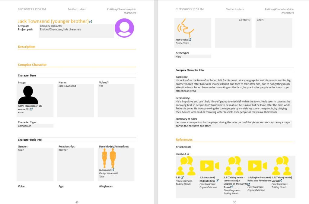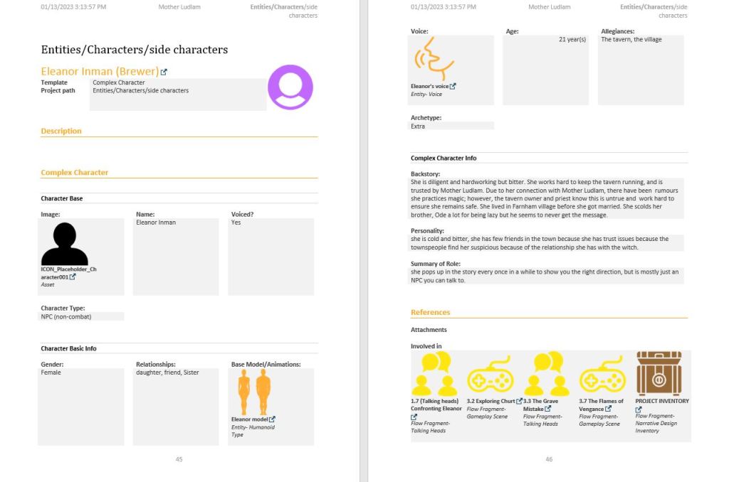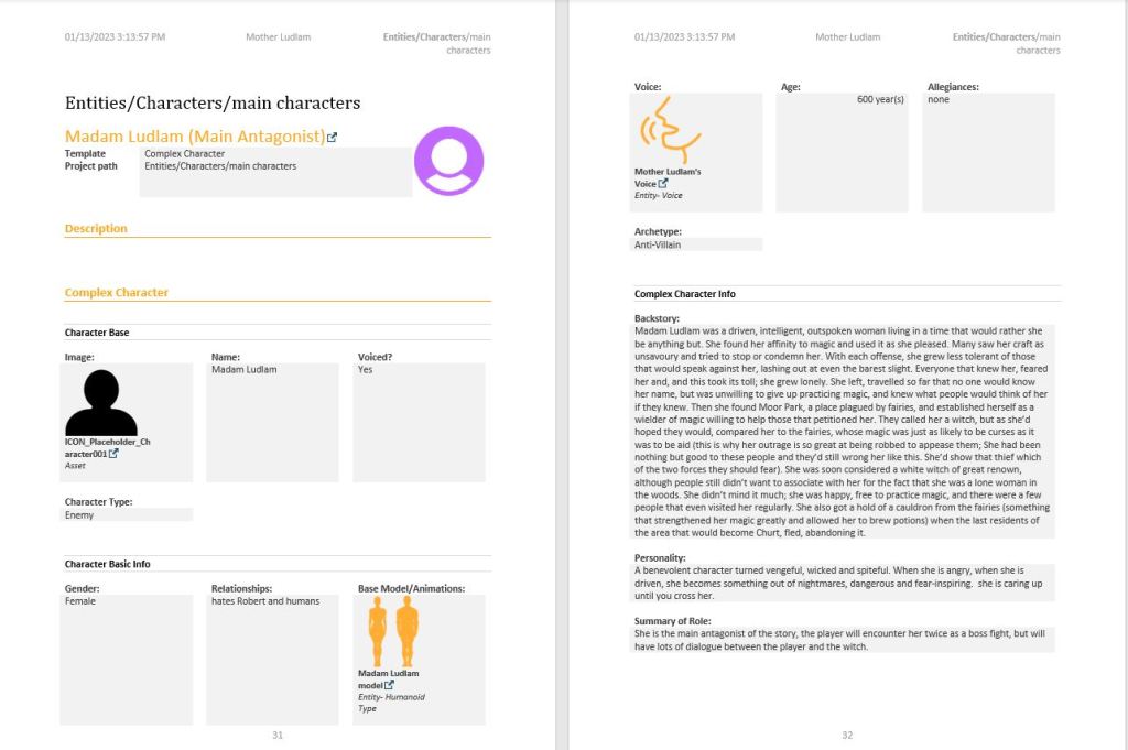 This is the roster of characters created for the Mother Ludlam Narrative design.